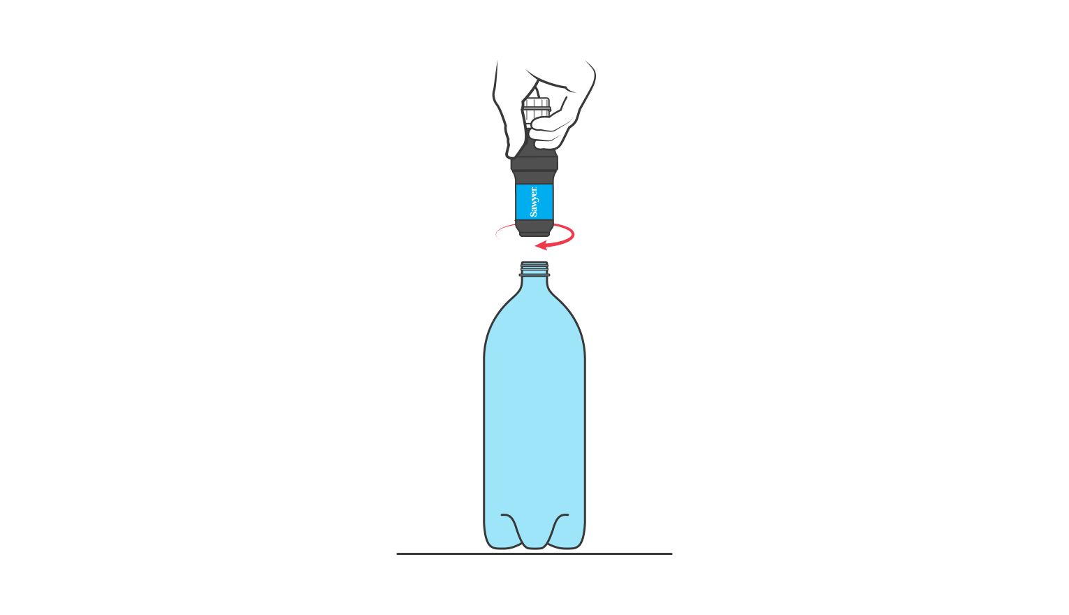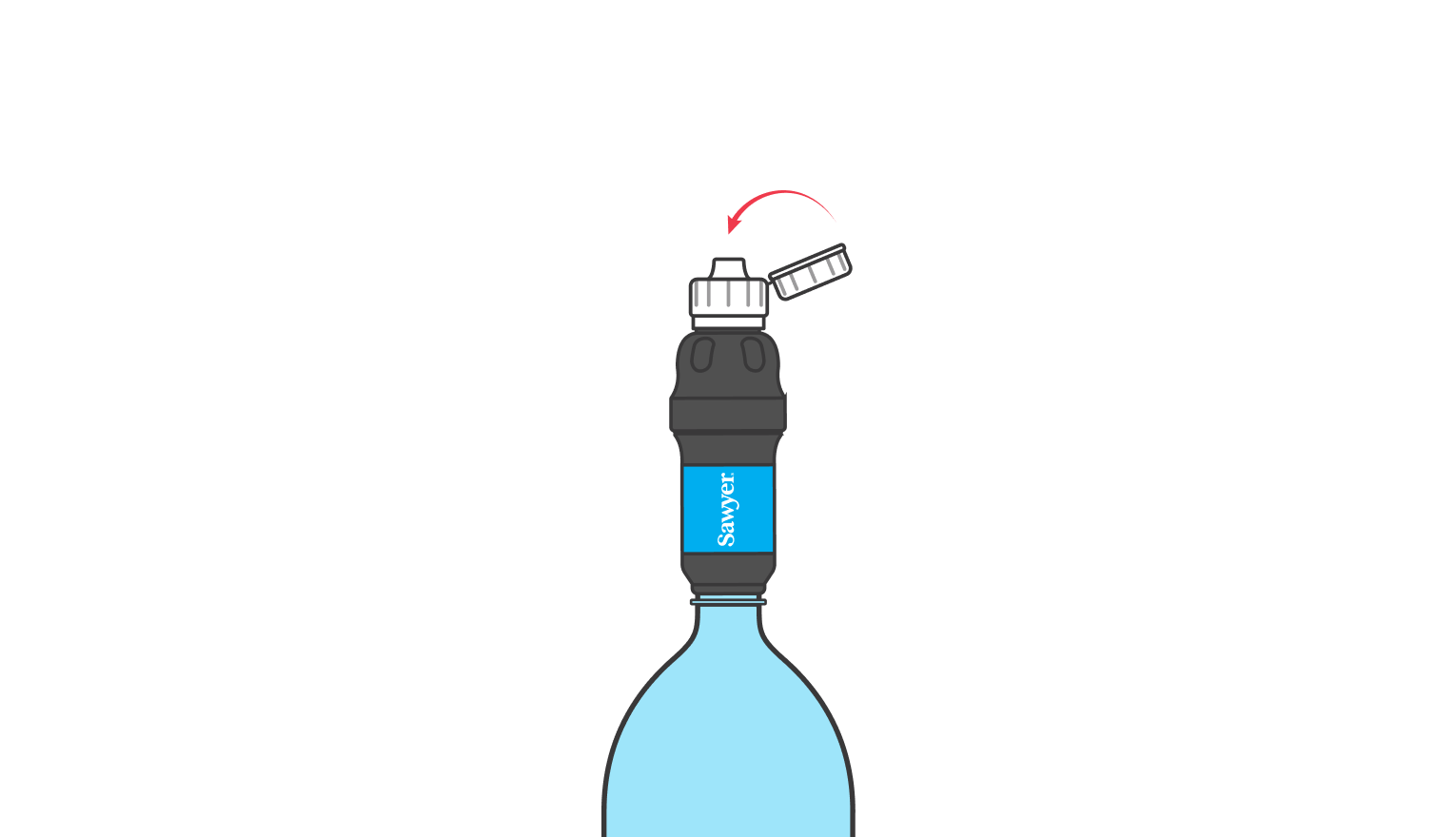Gently screw the filter onto the plastic bottle. Do not over-tighten, simply use finger strength only.